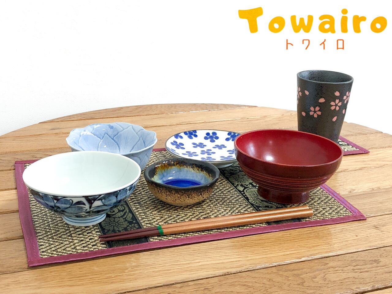 竹細工【ピンク】ランチョンマット&コースター4枚セット