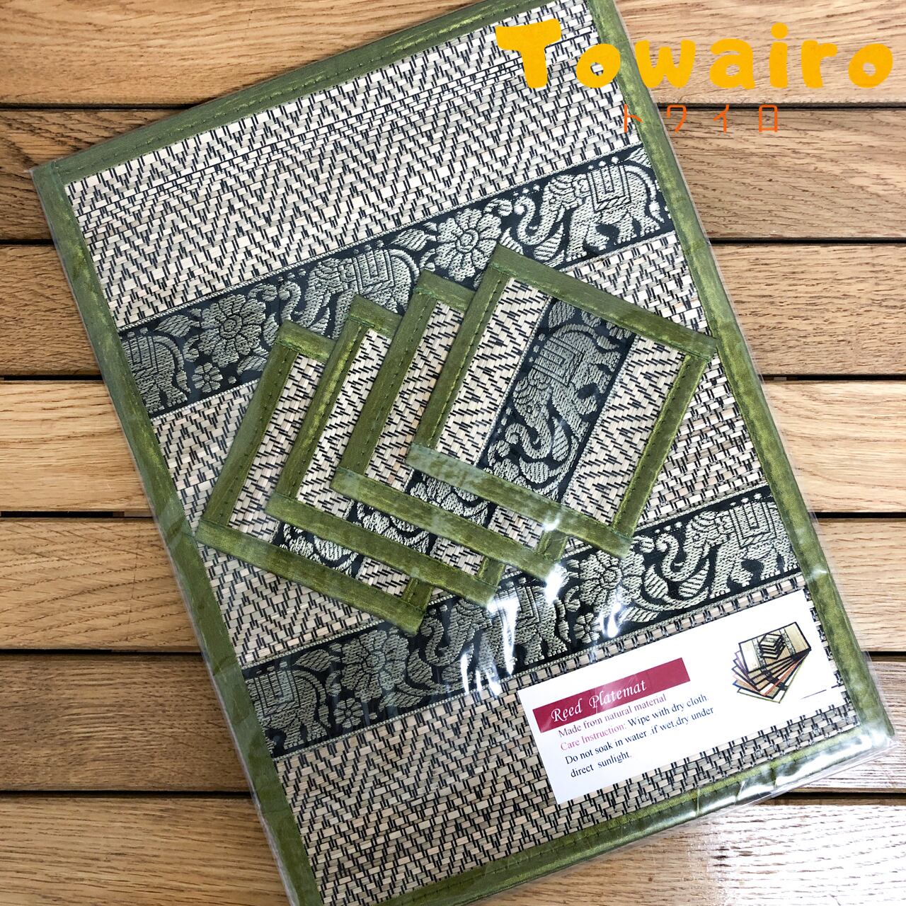 竹細工【グリーン】ランチョンマット&コースター4枚セット